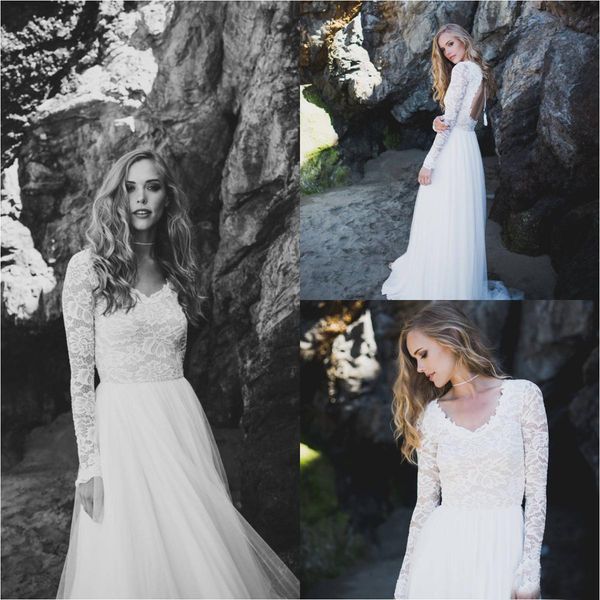 Chic 2019 Lace Country Wedding Dresses Long Sleeve Backless