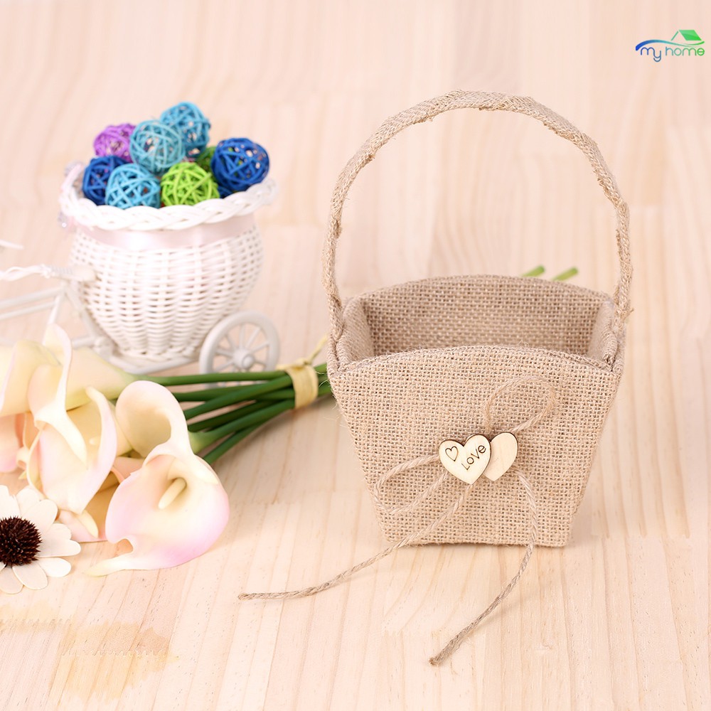 Wedding Magideal Vintage Flower Basket Burlap Jute Roses Rustic
