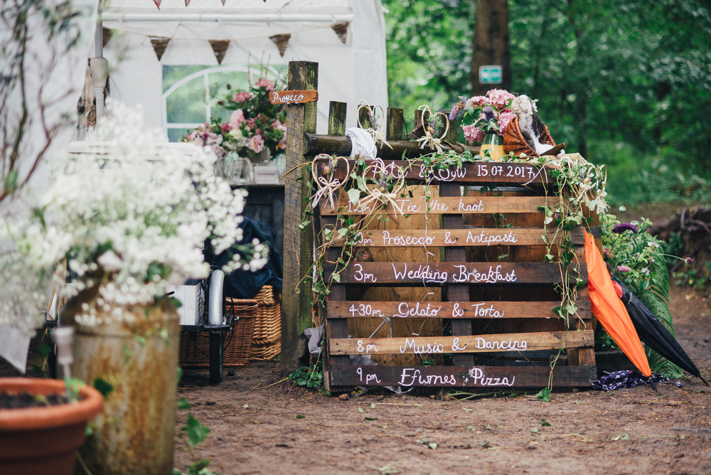 Diy Woodland Wedding With Caravan Bar Pizzas Ice Cream Bike